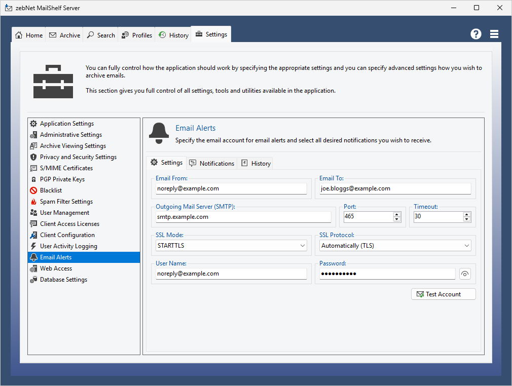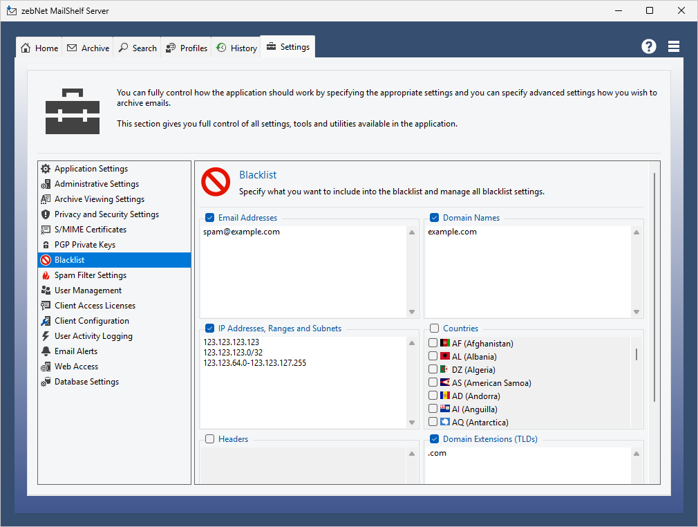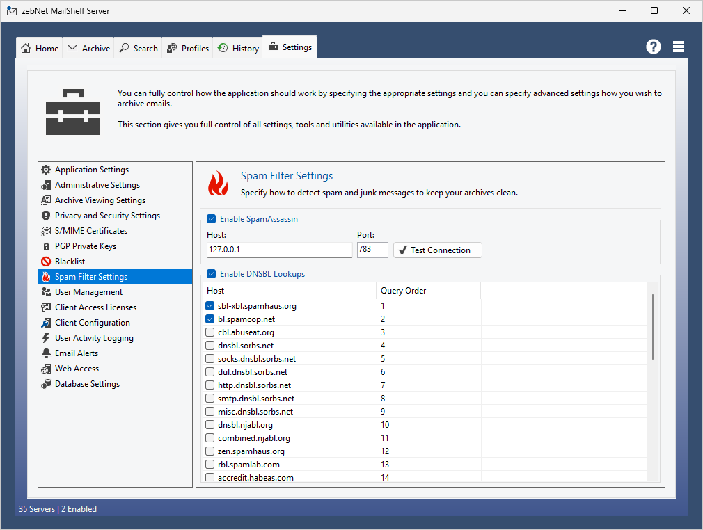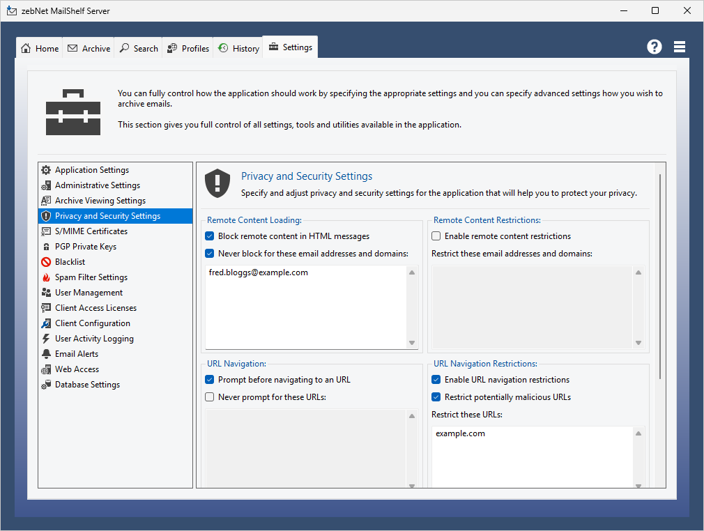 Have a look at the screenshots to get a first impression of what working with zebNet MailShelf Server looks like. Each image is only a thumbnail and you can click on an image to enlarge it.